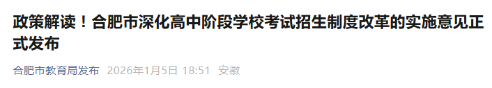 近日,合肥市教育局印发《合肥市深化高中阶段学校考试招生制度改革的实施意见》(以下简称《实施意见》)。现就相关政策解读如下。
