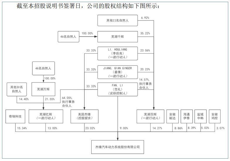 20年过去,如今杰锋动力控股股东已变更为美国杰锋,实际控制人为范礼(FAN, LI),而奇瑞科技仍直接持有公司15.34%的股份,为第二大股东。