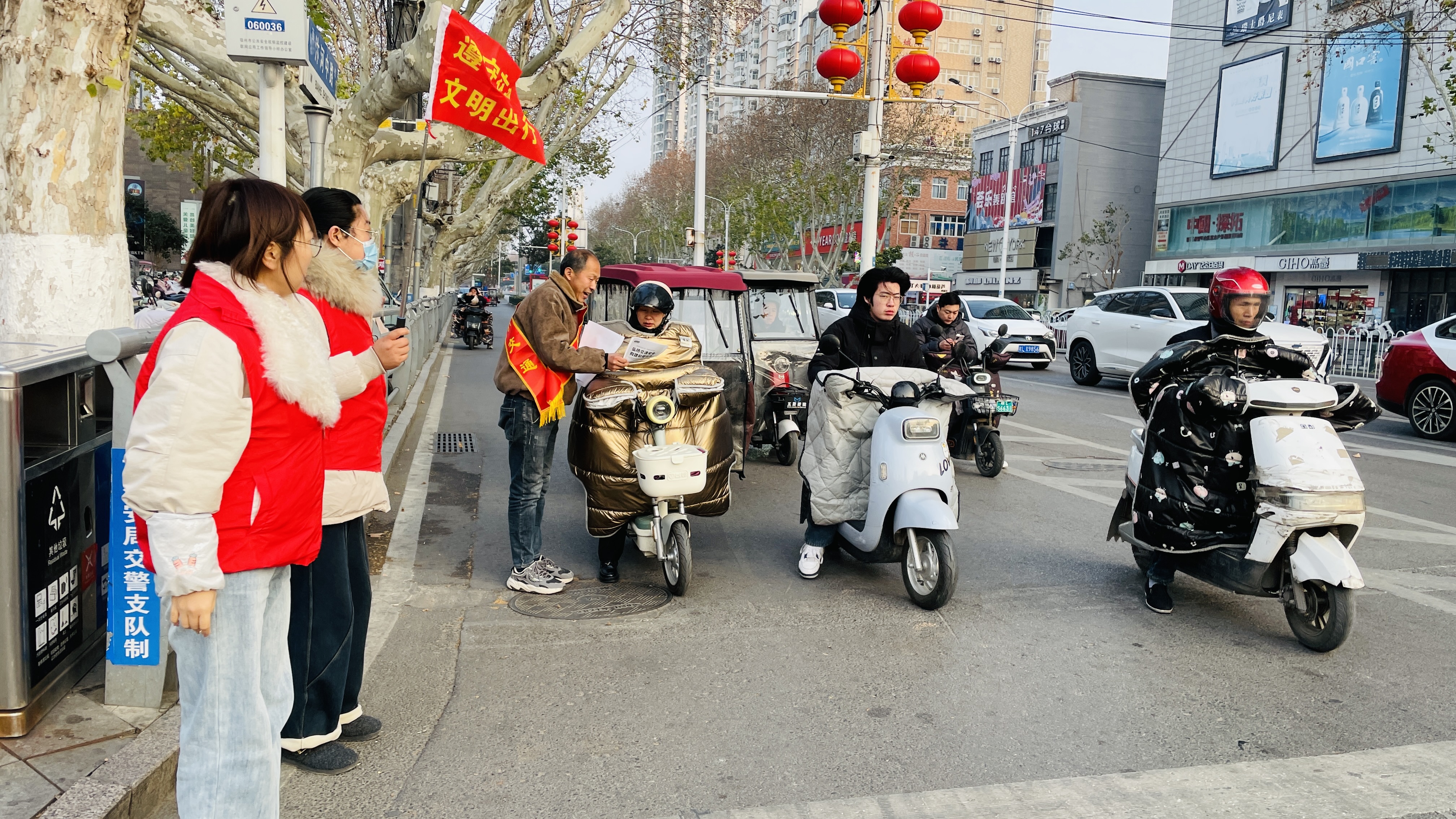 活动中,志愿者来到汴河路中路十字路口,手持醒目的交通劝导旗,提醒过往行人注意交通安全,按照交通信号指示有序通过路口,劝阻闯红灯、不礼让行人等各类不文明交通行为。同时,关注骑乘电动车的居民,向未佩戴头盔的行人,耐心讲解佩戴头盔对于保护自身安全的重要性。活动最后,志愿者向机动车驾驶员发放宣传单,提醒他们在行车过程中要礼让行人、拒绝酒驾、停车要规范入位等驾驶安全准则,确保他们能够理解并遵守交通规则,安全出行。