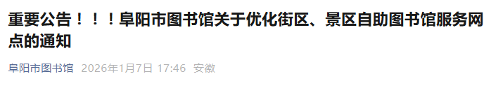 阜阳市图书馆关于优化街区、景区自助图书馆服务网点的通知