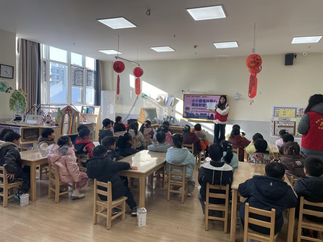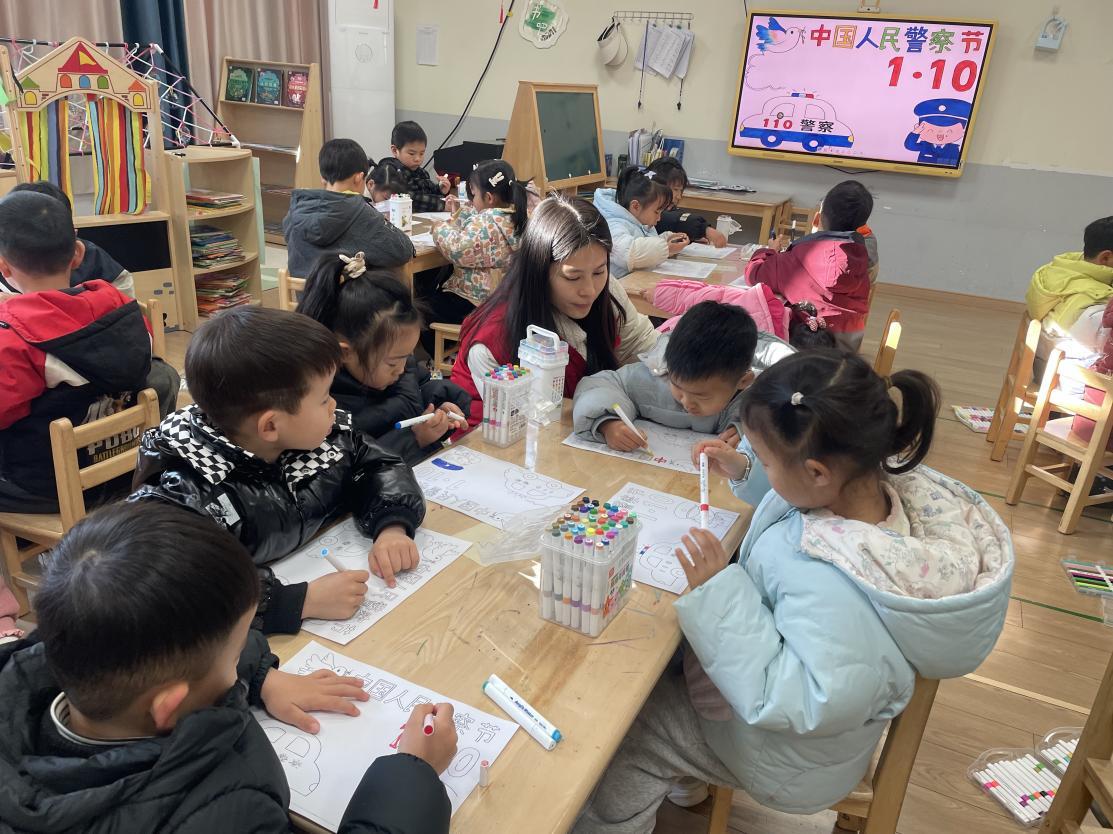 在1月10日中国人民警察节即将到来之际,肥东县三十埠社区工作人员走进肥东县未来之光幼教集团总园大四班,与孩子们共同开展“小小画笔绘警心 萌娃致敬守护者”主题活动。他们通过知识讲解、互动教学与创意创作,让孩子们在童趣氛围中读懂坚守、致敬平安,为警察节增添了一抹纯真暖意。