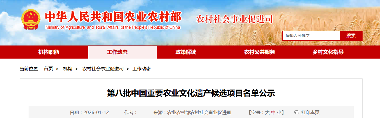 公示期五天,自2026年1月12日至2026年1月16日。如有相关问题,请于公示期间向农业农村部农村社会事业促进司反映。