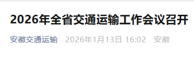 会议强调,2026年要聚焦打造“三地一区”、取得“三个新的更大进展”,服务构建安徽特色的现代化产业体系建设,加快完善现代化综合交通运输体系,确保“十五五”实现良好开局。要更加突出开局全面起势,着力推进交通强省建设迈出新步伐;更加突出有效投资挖潜,完成交通固定资产投资1100亿元以上,着力完善现代化综合交通运输体系;更加突出服务重大战略,推进跨区域跨流域大通道建设,实施都市圈通勤效率提升工程,着力强化交通基础设施互联互通;更加突出综合运输协同,着力推动交通物流降本提质增效;更加突出办好民生实事,着力满足人民群众美好出行需要;更加突出数智绿色赋能,着力培育发展交通运输领域新质生产力;更加突出改革治理效能,加快建设统一开放的交通运输市场,着力推进行业治理体系和能力现代化;更加突出夯实本质安全,着力建设更高水平的平安交通体系;更加突出全面从严治党,树立和践行正确政绩观,建设“清廉交通”。