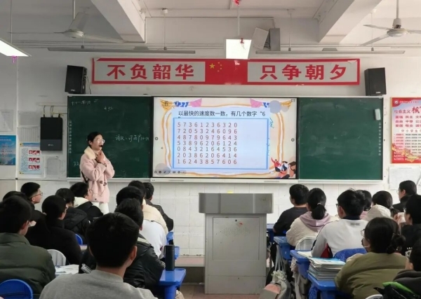 课堂伊始,心理老师贺岚通过“关键词拍手挑战”和“数字6快速计数”两个趣味游戏迅速点燃氛围。同学们全神贯注倾听、争分夺秒计数,在轻松的互动中直观感受到“注意力集中”与“分心”带来的不同结果。