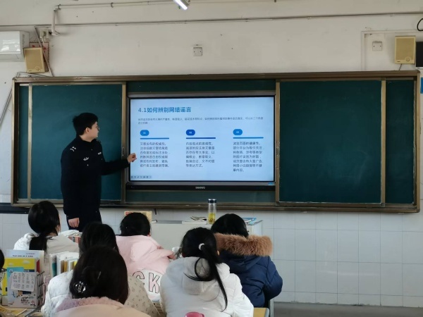 1月14日上午,肥东县公安局网络安全保卫大队的民警走进合肥市通用技术学校,与学校联合开展以“提高防范意识 积极抵制网络谣言”为主题的网络安全教育活动,为同学们带来了一堂生动而深刻的网络安全课。