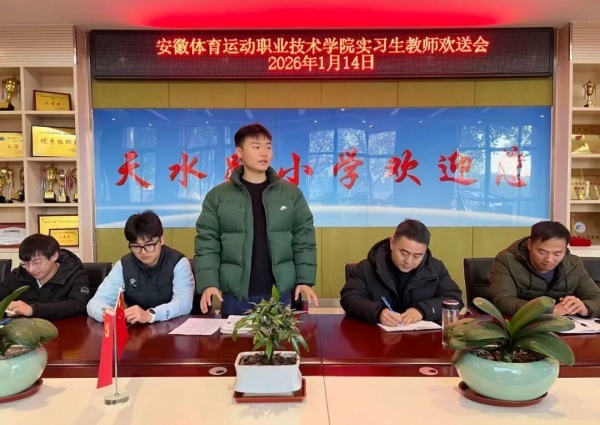 携教育初心而来,载成长收获而归。1月14日,合肥市天水路小学为安徽体育运动职业技术学院的实习教师举办了一场温情满满的欢送会。合肥市天水路小学校长苗峰、专职副书记张自兵及体育组教师参与本次欢送会,为这段冬日里的师徒历练画上圆满的句点。