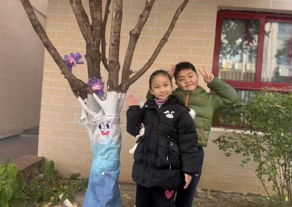 孩子们化身自然小卫士,用彩带、编织外衣为幼儿园内的树木抵御寒冬。在动手装扮的过程中,他们直观认知植物的生长需求,将对生命的关爱转化为具体行动。这场与自然的互动,不仅让同理心与责任感在幼儿心中扎根,更让社会交往与共情能力在自然滋养中实现内在成长。