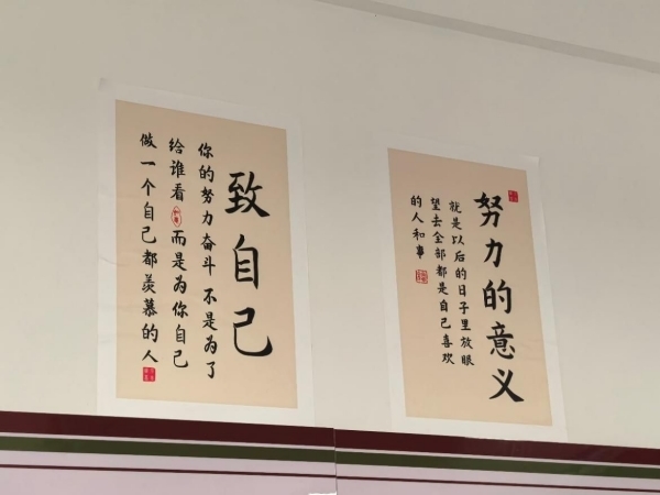 在评比现场,一幅幅饱含深情的书法作品令人驻足:“致自己——你的努力奋斗不是为了给谁看,而是为你自己,做一个自己都羡慕的人。”“踔厉奋发,笃行不怠。”“少年应有鸿鹄之志,当骑骏马踏平川。”这些充满力量的文字,不仅展现了学生们对梦想的执着追求,也体现了学校“以文化人、以德育人”的教育初心。部分班级还巧妙融合传统元素,如梅花窗格设计的诗词展板、红色流苏点缀的新春许愿卡墙,将中华优秀传统文化融入日常学习生活,让文化可触、可感、可传。