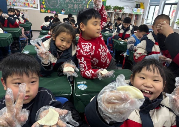 二(5)班的课堂变身欢乐厨房!由吴逸轩妈妈,冯梓玥妈妈,鲍诗语妈妈和杨佳怡妈妈四位家长合作,给孩子们带来《包饺子趣味课堂》,把揉面、擀皮、包馅的小技巧,把“饺子”的传统民俗文化揉进了趣味课堂互动里。妈妈们手把手教孩子们捏元宝饺、月牙饺、猫耳饺等,还用提问抢答的方式讲关于饺子的故事,给操作灵巧、回答问题积极的小朋友发了可爱贴纸和书签作为奖励。本次的家长进课堂活动,孩子们既了解了民俗知识,学会了生活小技巧,又品尝了美食,真是一次有趣又有意义的实践活动!