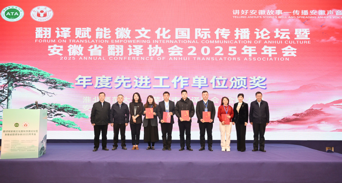 会上,合肥大学外国语学院、芜湖市翻译协会等荣获“年度先进工作单位”,周飞等为获奖单位颁奖。