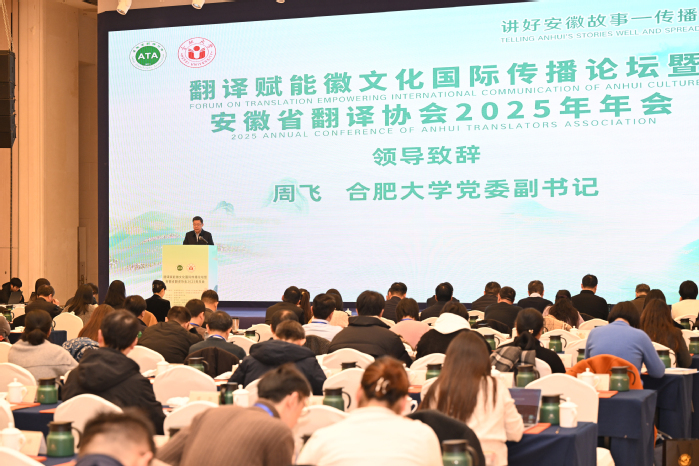 1月17日,安徽省翻译协会主办、合肥大学承办的“翻译赋能徽文化国际传播论坛暨安徽省翻译协会2025年年会”举行。安徽省人民政府外事办公室副主任吕小梅、安徽省教育厅外事处处长姚德勇、校党委副书记周飞出席开幕式并致辞。活动集聚安徽新媒体集团、安徽画报社、科大讯飞等多家单位,共同搭建起“政产学研媒”深度融合的交流平台,约200名代表参会。