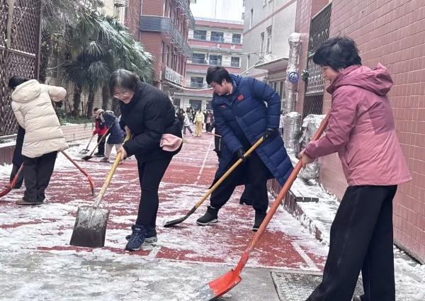 早到的学生踩着干爽地面走进校门,校园在晨光中恢复秩序。一次铲雪,一场守护。红星党员用行动说话,在冬日清晨为校园添了一分踏实、一寸温暖。(图文/陈露露)