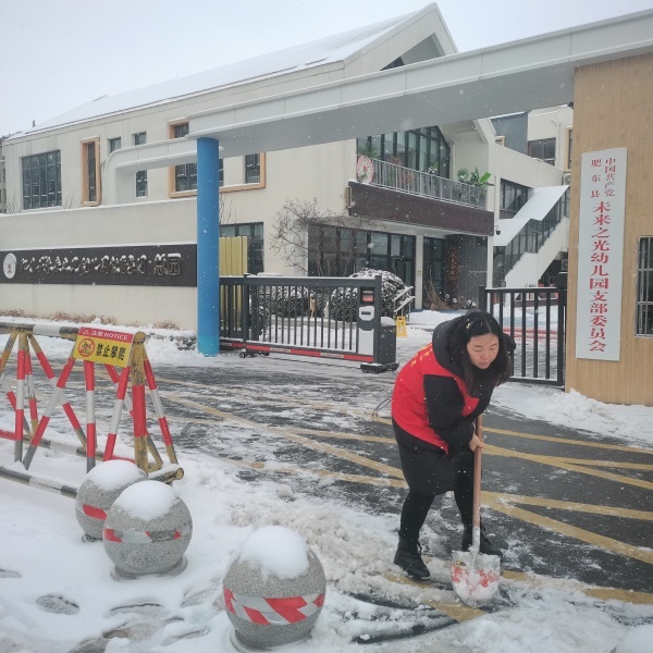 为应对降雪天气带来的出行隐患,2026年1月20日,肥东县未来之光幼儿园党支部积极响应号召,组织开展了“扫雪除冰保平安 党员先行暖寒冬”主题党日活动,以实际行动保障校园及周边道路安全畅通。