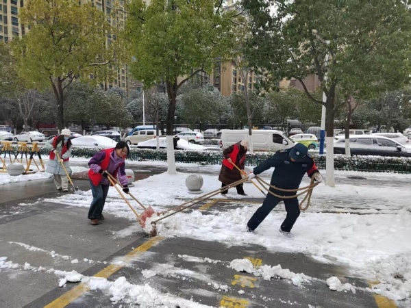 大家分工协作,重点清理了大门、主通道、台阶坡道及户外活动场地等处的积雪暗冰,并将清扫范围延伸至周边人行道。尽管天气寒冷,但党员们干劲十足,铲雪、扫雪、铺设防滑垫,忙碌的身影成为雪中最温暖的风景。经过共同努力,一条条干净安全的通道被清理出来。