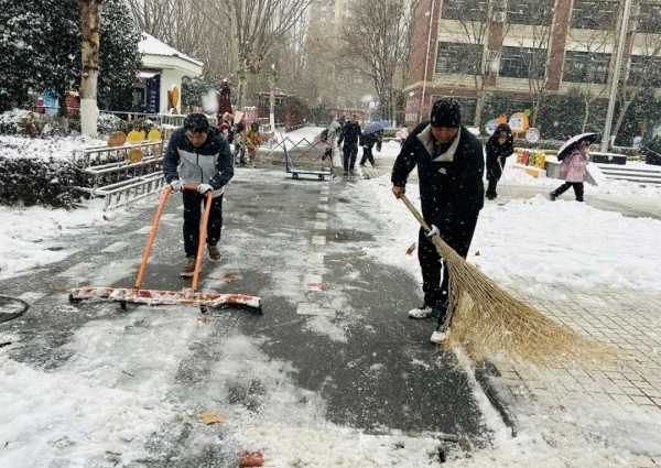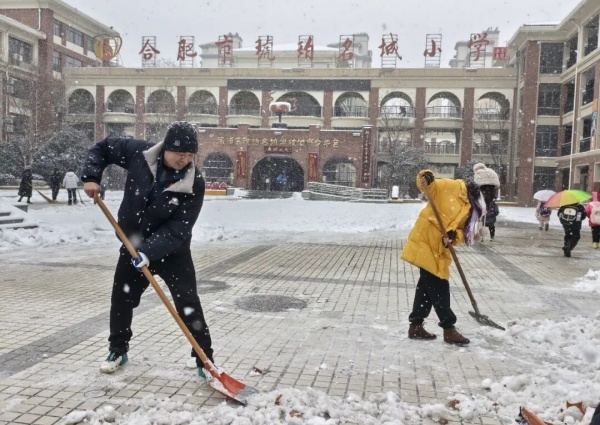 近日,合肥首场强降雪如约而至,校园披上银装的同时,也给师生出行带来了诸多不便与安全隐患。为保障师生通行安全,营造整洁有序的校园环境,合肥市琥珀名城小学党总支迅速响应,以雪为令,组织集团三校区党员教师,于1月20日清晨在校园内开展了清雪除冰志愿服务行动,用实际行动诠释了“党建引领”的深刻内涵,为寒冷冬日筑起了一条条温情的“平安路”。