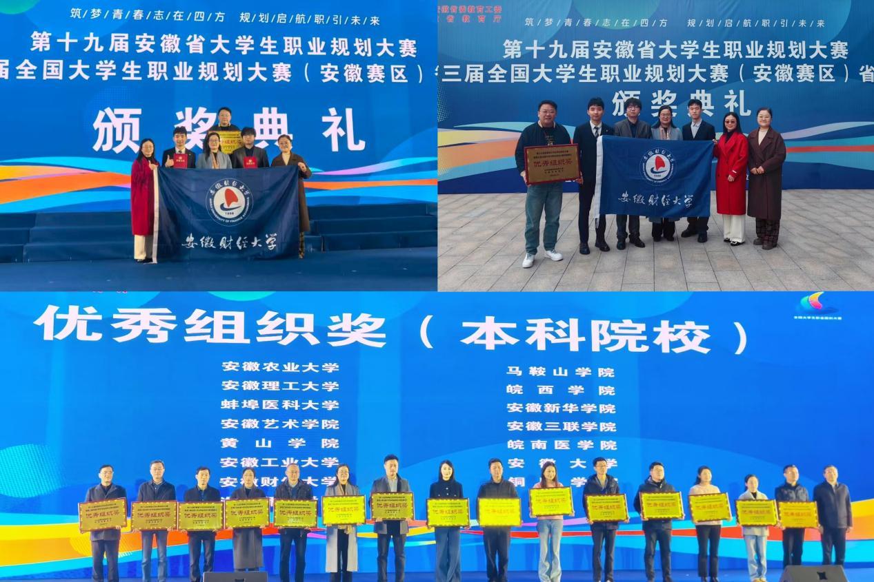 1月18日,由中共安徽省委教育工委、安徽省教育厅主办的第十九届全省大学生职业规划大赛暨第三届全国大学生职业规划大赛(安徽赛区)决赛圆满落幕,安徽财经大学在本届大赛中成绩突出,荣获“优秀组织奖”,各赛道斩获2金、2银、2铜。