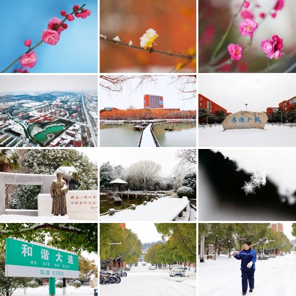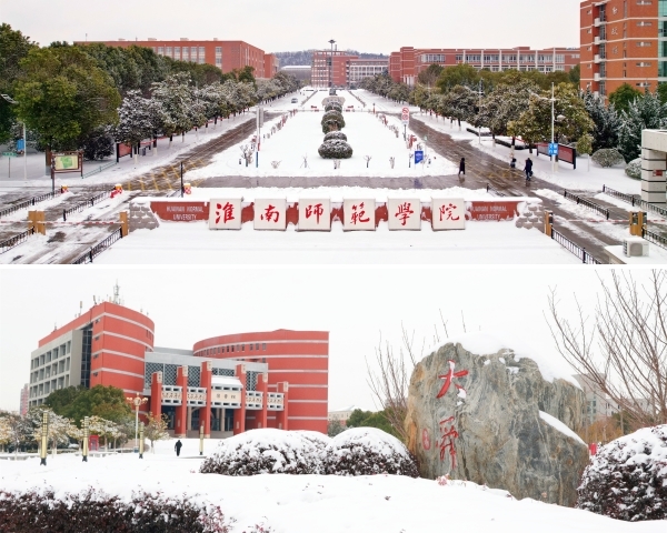 今日校园,天地澄澈,玉絮飞琼。正值大寒节气,一场瑞雪翩然而至,将淮南师范学院装点成一片皓然诗境。航拍镜头下,校园银装素裹,恢弘楼宇静立雪中;知明湖上,水色天光与皑皑白雪相映成清寂画卷。