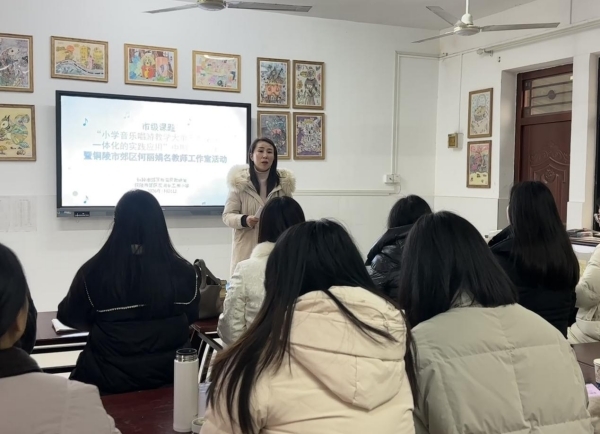为落实美育育人要求,推进课题研究与教师专业成长,1月26日上午,市级课题“小学音乐唱游教学大单元教学评一体化的实践应用”中期汇报展示暨何丽娟名教师工作室活动在铜陵市郊区五洲小学举行。郊区中小学音乐教师、工作室全体成员及课题组成员参与活动。