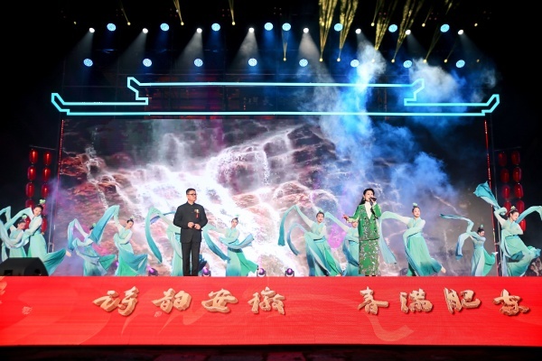 晚会现场,由汪婷婷老师编导的两个节目:《浮槎谣》作为肥东县选送的黄梅戏歌节目,学生们用优美的身段,灵动的水袖演绎了一曲充满地方特色的赞歌,展现了肥东文化的深厚底蕴。《美丽中国》是一个充满时代气息的舞蹈节目,合肥市通校技术学校的学生们用灵动的舞姿描绘出祖国山河的壮丽画卷,传递出对祖国的热爱与赞美。