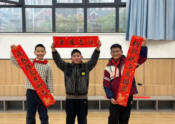 曾亚楠老师在活动中谈到:“我们坚持举办写春联活动,不仅是传承习俗,更是希望以‘四好三美化’为指引,引导孩子们在翰墨书香中陶冶情操,美化心灵,让优秀传统文化成为滋养他们成长的沃土。”同学们也兴奋地分享,书写的过程让他们静心专注,亲手书写春联也比购买成品更有意义,他们不仅感受到书法艺术的魅力,更在实践中体会到“写好字、做好人”的深刻内涵。