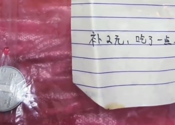 店主表示,昨天正常拆退货包裹时,发现了顾客的退货里放了一个小塑封袋,有两个一元的硬币和一张纸条,打开纸条才知道是顾客试吃一点粉条后给了2元钱,顾客在线上店铺也没留言联系。开网店一年多了,第一次遇到这么友善的顾客。