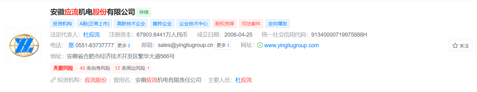 安徽应流机电股份有限公司 (曾用名:安徽应流机电有限责任公司) ,成立于2006年,霍山应流成员,位于安徽省合肥市,是一家以从事通用设备制造业为主的企业,已于2019年完成了定向增发。风险方面发现企业有涉诉关系1条。