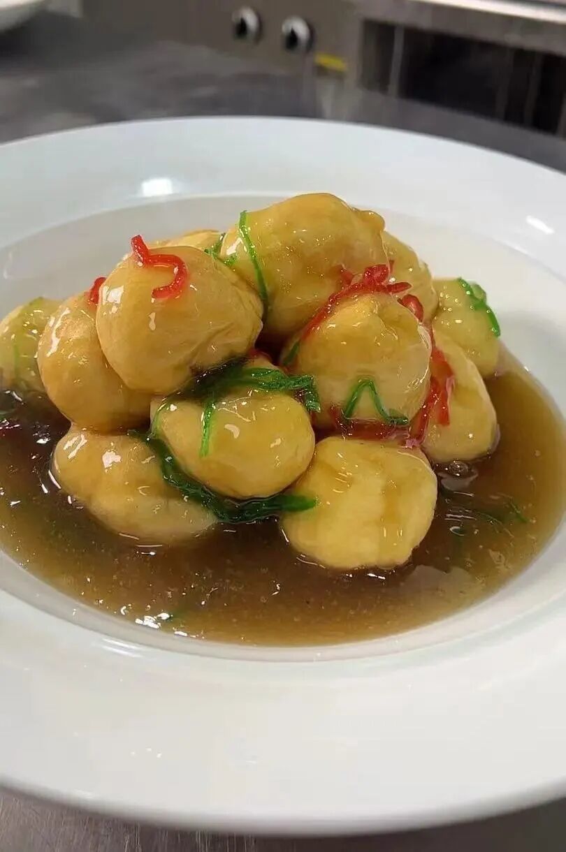 尝一尝传说中朱元璋念念不忘的“家乡美味”~豆腐外酥香内鲜嫩,肉馅醇厚,一口咬下,如同打开一个味觉盲盒,唇齿间满满的惊喜感受。