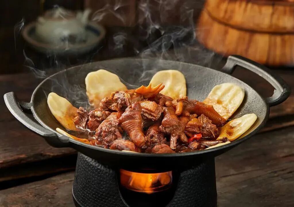 灶火明灭间,香气四溢。鸡肉久炖不柴,酱香深入肌理;手作饼子半是焦脆半是软润,浸满汤汁。围锅而食的热闹与满足,是旅途中最温暖的记忆锚点。