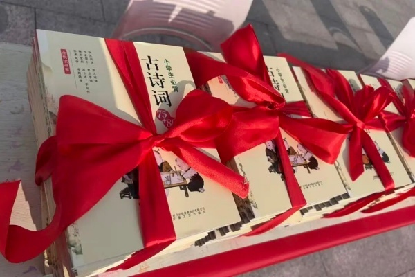 学校领导将精心挑选的古诗书籍郑重地交到二年级任课教师手中。这不仅是教学资料的传递,更是一份沉甸甸的责任——老师们将成为孩子们古诗学习的引路人,带领他们开启诗意之旅。