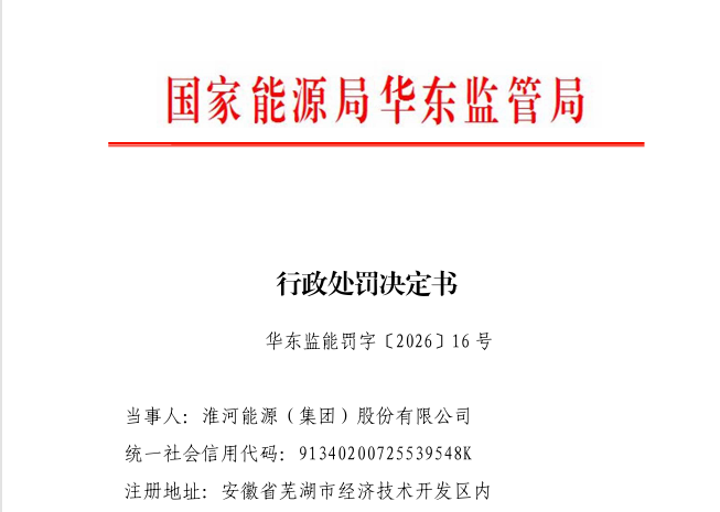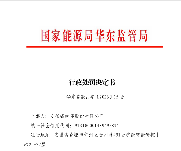 1月30日,华东能源监管局发布行政处罚决定书(华东监能罚字〔2026〕15号、华东监能罚字〔2026〕16号、华东监能罚字〔2026〕17号)。