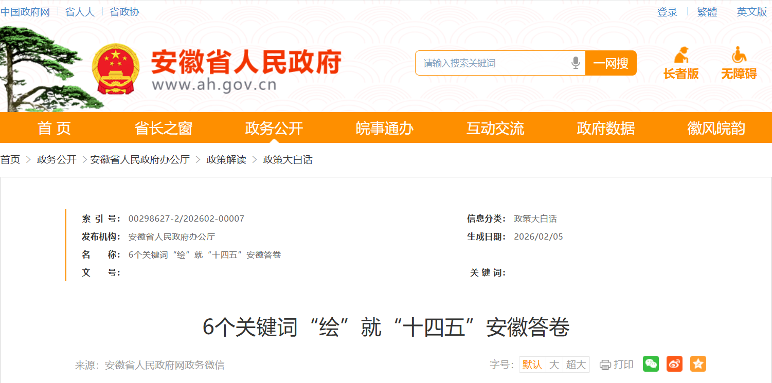 近日,安徽省人民政府发布政策大白话——6个关键词“绘”就“十四五”安徽答卷,详情如下: