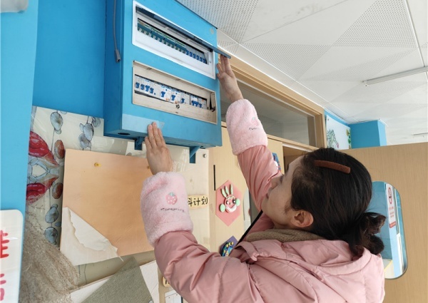 安全小组重点对园内水、电线路及设施展开全面检查。逐一排查供水管道是否存在渗漏、阀门开关是否灵活有效,确保假期用水安全无虞;细致核查配电房设备运行状态、电线线路老化情况,对裸露线头、松动接口等问题及时处理,保障电路绝缘良好、运行稳定,从源头杜绝水电安全隐患。