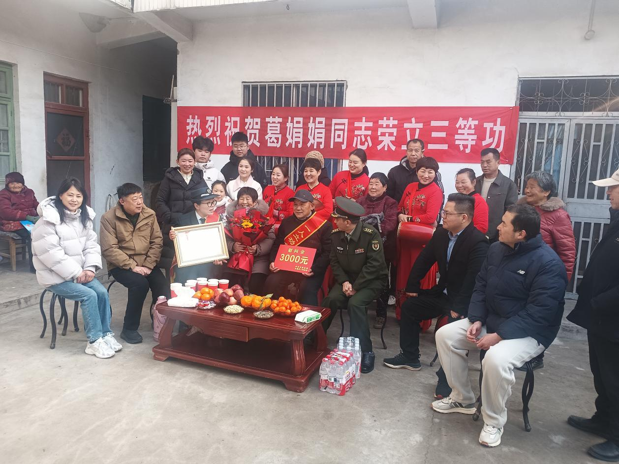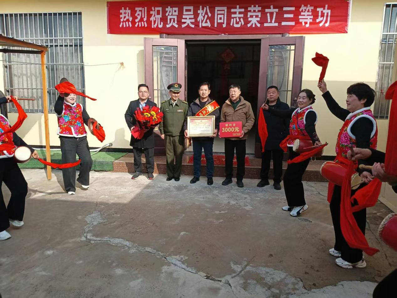 为深入贯彻落实拥军优属政策,切实增强军人军属的荣誉感、获得感和幸福感,2月3日上午,淮北市杜集区退役军人事务局联合高岳街道办事处为荣立三等功的葛娟娟、李敏、曹贤志、吴松家庭送上立功喜报、慰问金和美好的祝愿,让“一人立功、全家光荣”的崇军理念深入人心。