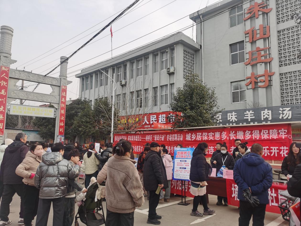 就业登记展位前人流如织,区人社局、朱仙庄镇政府共同组织19家企业齐聚一堂,涵盖高新区、循环园、宿马园区、朱仙庄本地企业,为100余名有求职需求人员、高校毕业生、返乡人员提供“一站式”求职招聘服务。活动现场,镇直有关站所借热闹大集为载体,化身政策宣讲员,用通俗易懂的语言、宣传彩页向来往群众进行反邪教警示教育集中宣传、城乡居民基本养老保险政策解读,推动民生政策宣讲与大集氛围营造双向融合,切实增强居民幸福感和获得感。