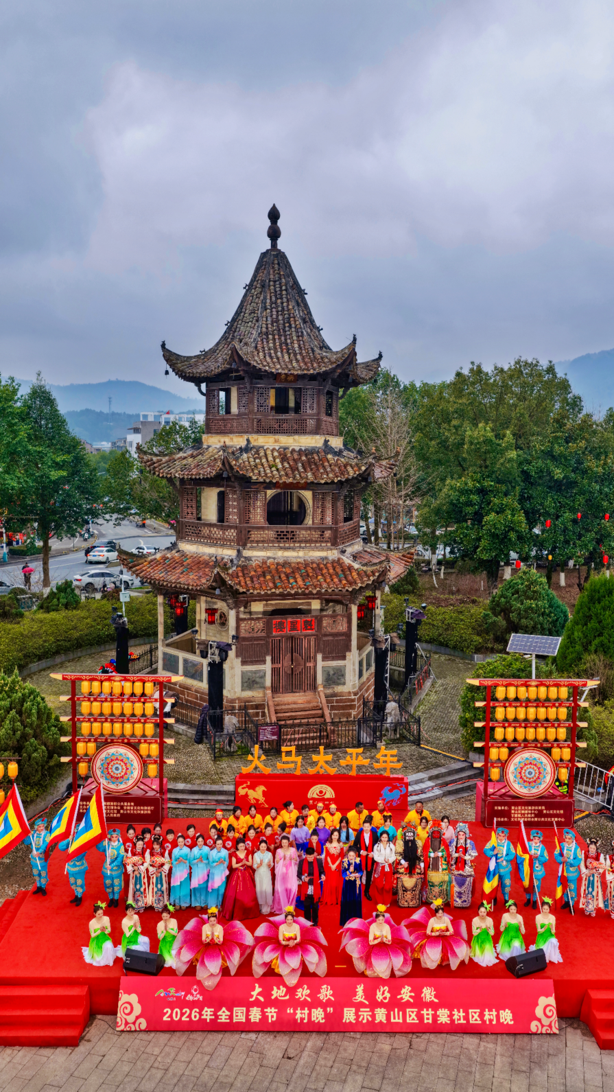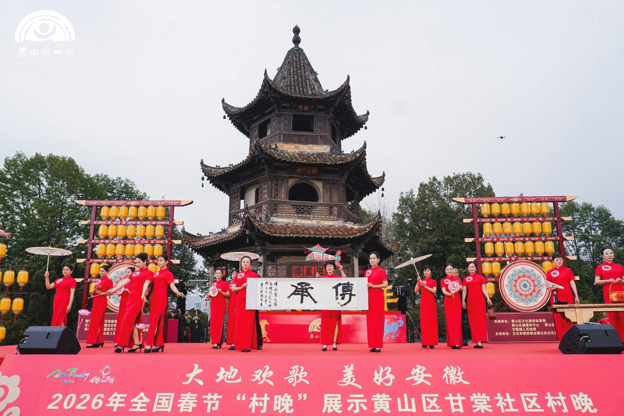 黄山七四七,春潮涌动;火马太平年,非遗焕彩。为深入贯彻落实党的二十届四中全会关于农业农村工作的部署要求,充分激活乡土文化内生动力,2月7日,2026年全国春节“村晚”黄山区甘棠社区示范展示活动,在黄山市黄山区六角楼文化广场成功举办。