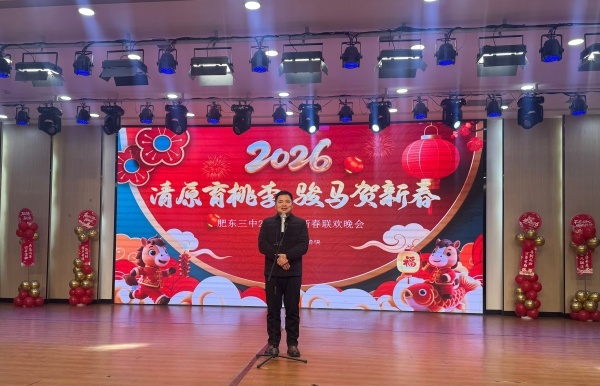 律回春渐,时盛岁新。为丰富教职工精神文化生活,营造温馨和谐的校园氛围,2月5日,肥东三中2026年教职工迎新春联欢晚会在总部多功能报告厅温情启幕。全体教职工欢聚一堂,共话过往耕耘,共赴新程之约,在欢声笑语中迎接马年的到来。