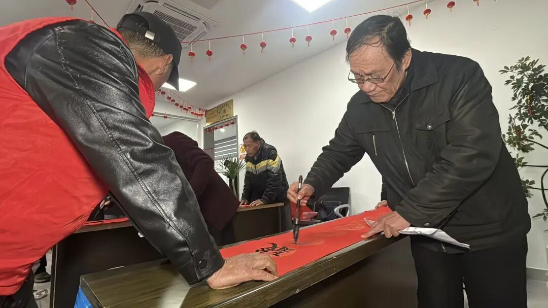 活动现场,社区还特别设置了“写对联”环节。志愿者们铺开红纸,挥毫泼墨,写下寓意吉祥的春联。“今天社区这个活动搞得很好,包子味道很好,吃进去不仅胃里暖暖的,心里也暖暖的。”居民程文边吃着包子边说。