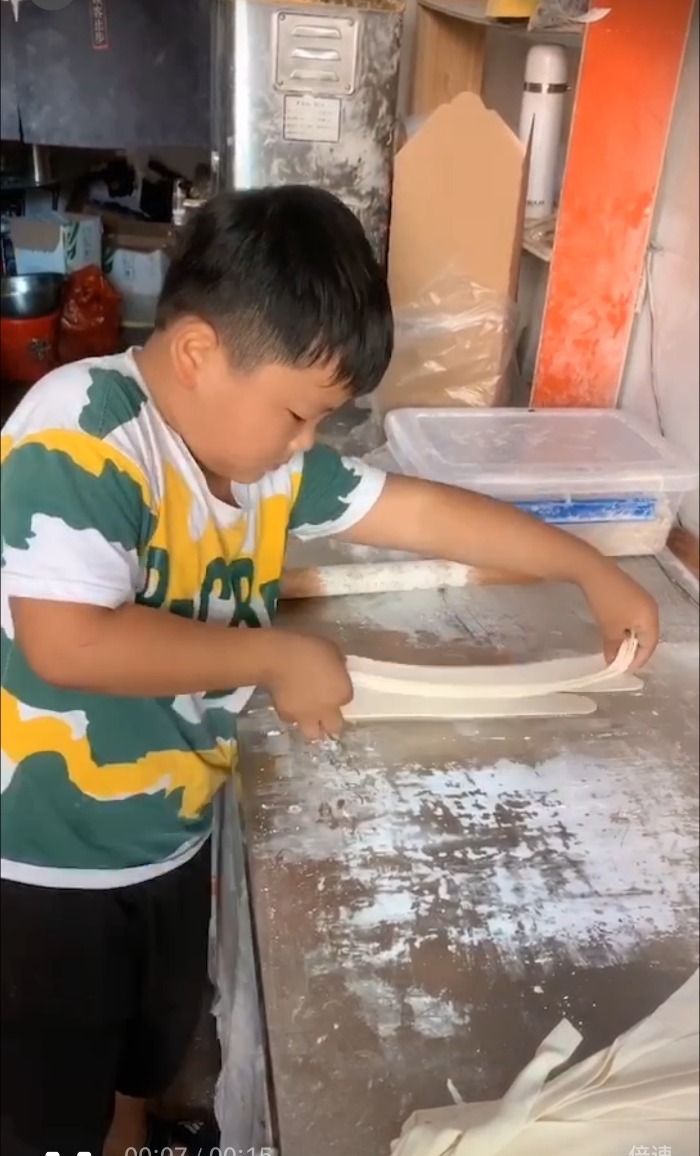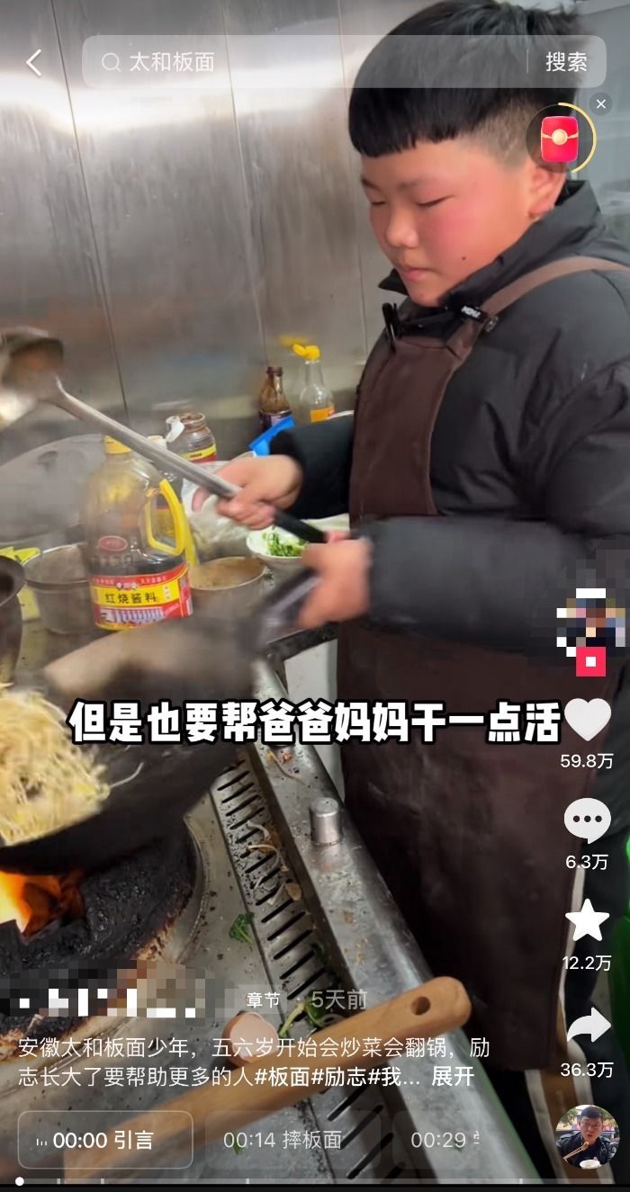 “孩子三四岁,刚有案板高的时候,就踮着脚在店里帮忙摔面了。”王女士的记忆里,自家的太和板面店不仅是营生,更是儿子成长的课堂。从小在父亲身边耳濡目染,刘宇泽对后厨的一切充满好奇与热情。“再大一点,脖子刚超过灶台,就开始琢磨着炒菜、颠锅了。”采访中,王女士的语气里满是由衷的骄傲,也夹杂着一丝心疼,“很多人说我们是为了流量,可只有我们自己知道,孩子是真心想为我们分担。看着他小小的身影忙前忙后,我们心里暖,但也舍不得。”