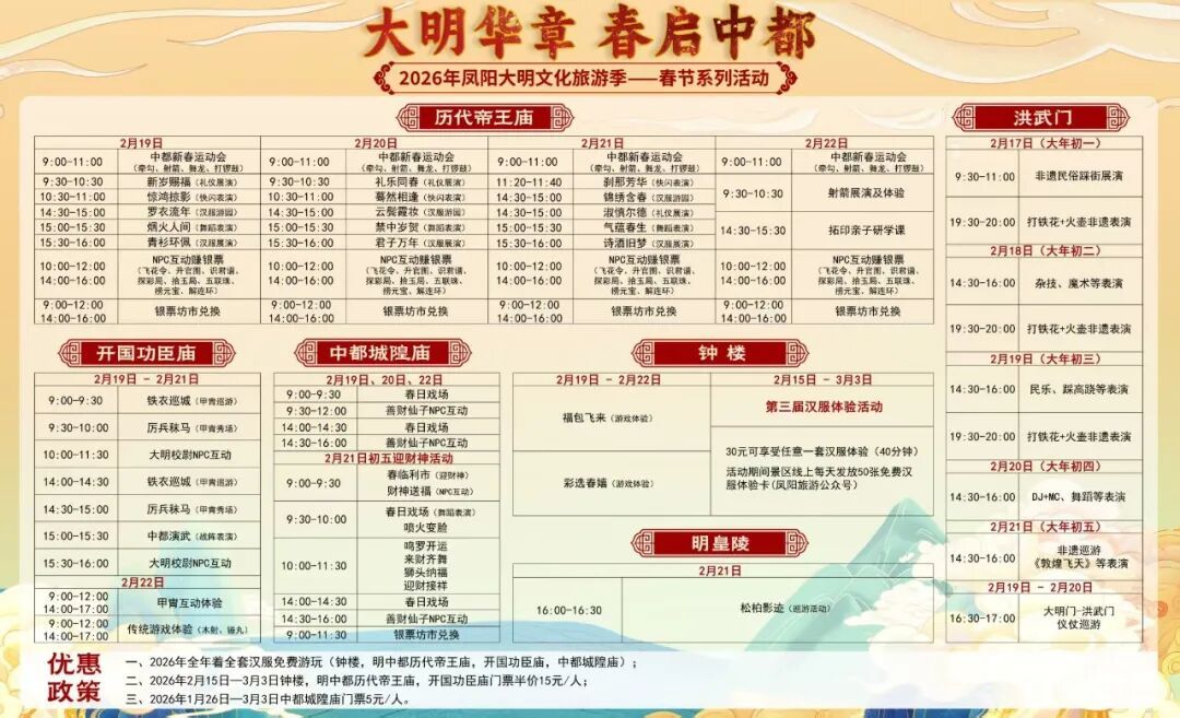 ✨第三届汉服体验活动正式开启~30元可享受40分钟任意一套汉服体验。活动期间,景区线上每天发放50张免费汉服体验卡,可通过凤阳旅游公众号参与活动。从飘逸的曲裾到端庄的袄裙,每一套都经过精心搭配,妆发完成后,你可以在古风场景中随意行走、转身、浅笑,随手一拍就是故事感满满的大片。