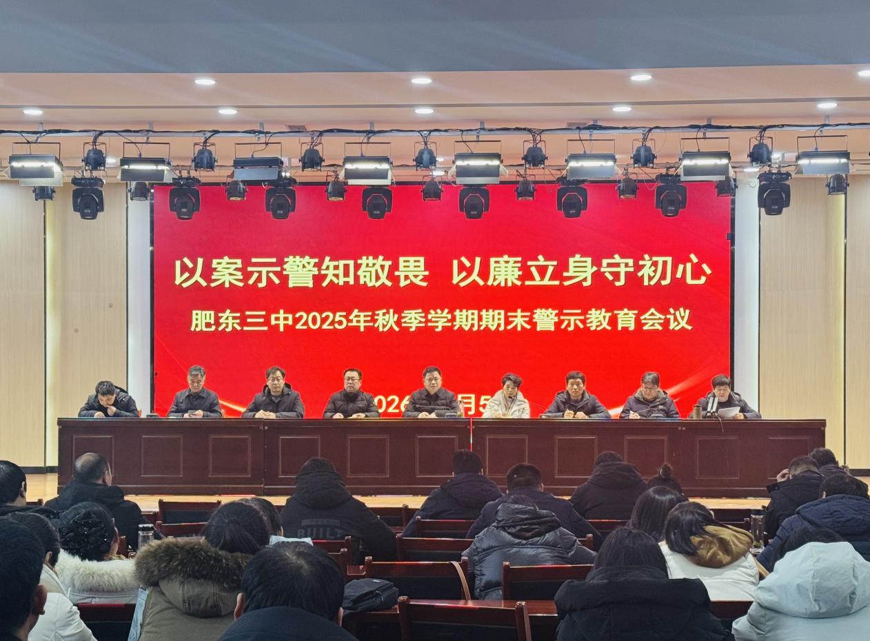 为全面总结2025年秋季学期工作成效,科学谋划寒假及新学期重点任务,2月5日下午,肥东三中召开2025年秋季学期期末全体教职工大会并同步开展“强师德 正师风 做新时代好教师”专题党课。会议由党委委员、副校长王卫华主持,全体教职工参会。