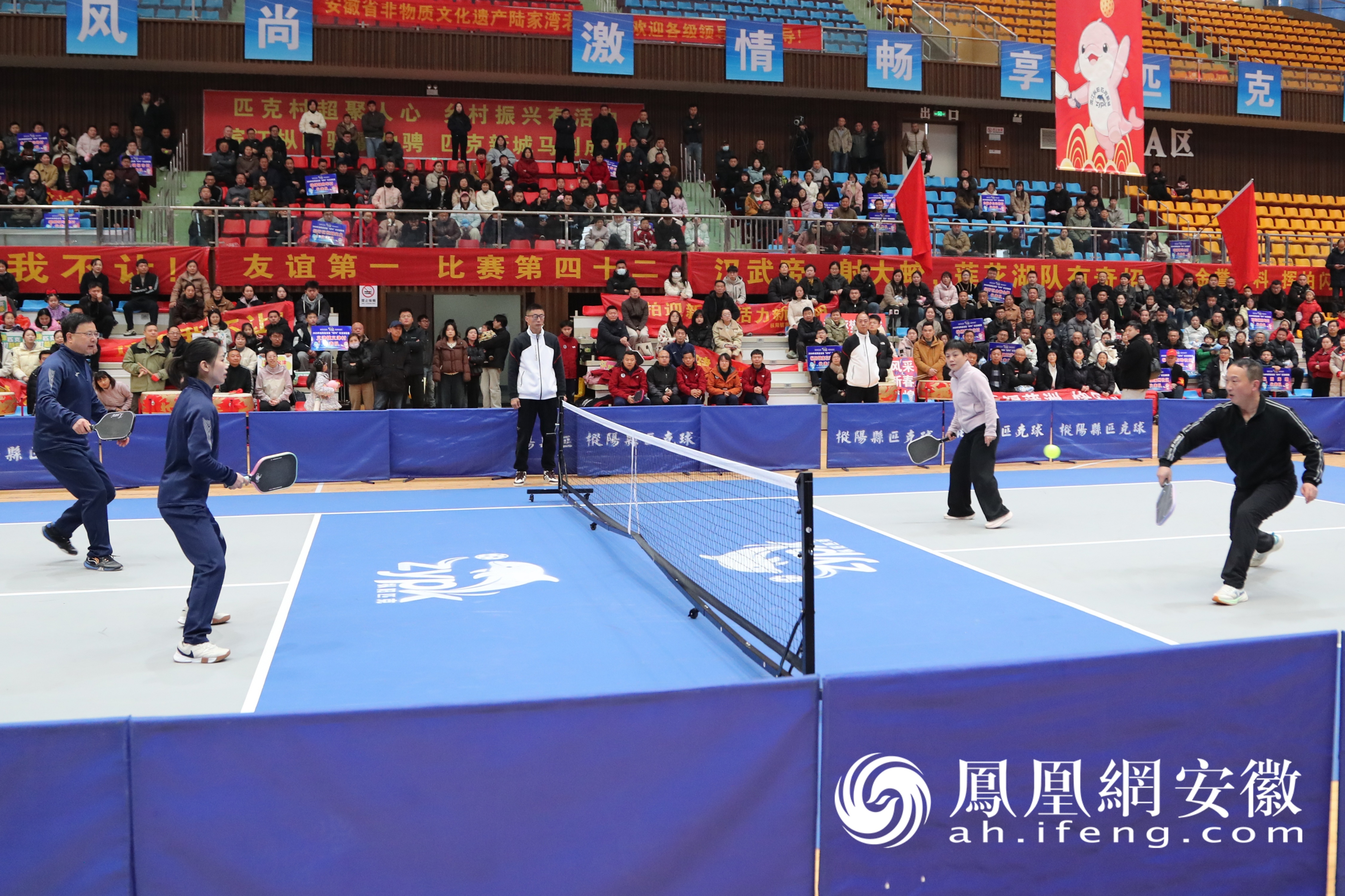 2月13日,枞阳县首届“村PK”匹克球联赛决赛暨匹匹克克大拜年活动在枞阳县体育馆举行。活动现场气氛热烈,舞蹈、合唱、狮子灯、舞龙灯等表演将年味拉满。(凤凰网安徽特约摄影师 吴蜀/摄)