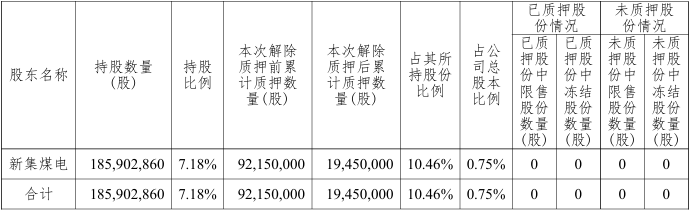 截至本公告披露日,新集煤电累计质押股份情况如下: