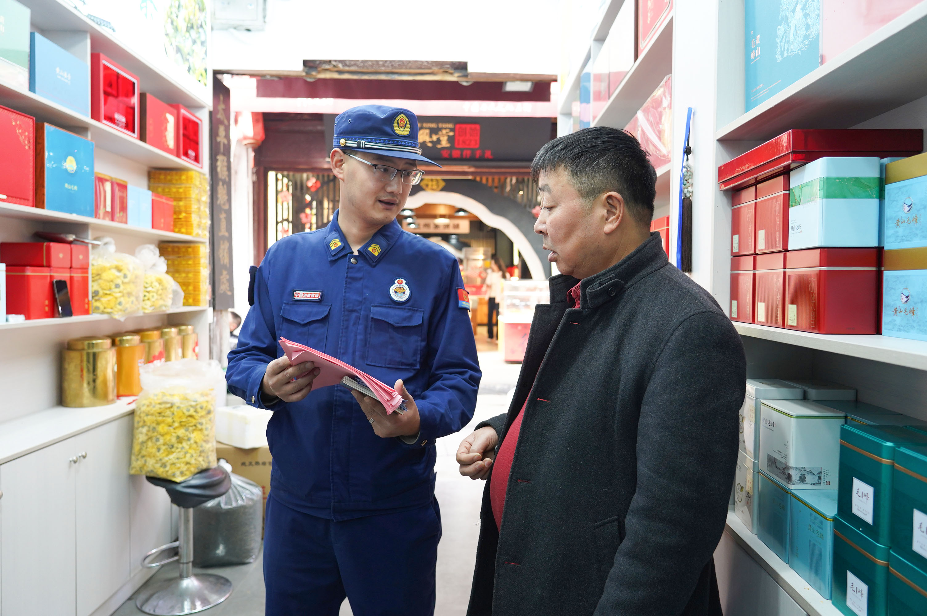 谢裕大老街店负责人谢玲 感慨地说:“他们大过年的也不休息,天天来转、反复叮嘱,不仅帮我们排查隐患,还手把手教怎么用灭火器。有他们在,我们做生意踏实,游客逛得也安心。”