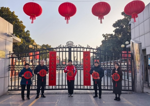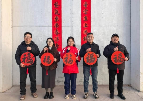 春归大地添新色,联映校园育芳华。2月14日(农历腊月二十七),寿县寿春中学暖意融融、墨香氤氲,学校总务主任邵荣权、团委书记朱彩云携手八年级(19)班王昊喆、九年级(7)班周婧雅两位同学、家长及其班主任,共同举行“我为学校写春联”悬贴仪式,将两幅饱含少年才情与校园情怀的原创春联,郑重悬挂于校园西门与南门,以联寄情、以墨传韵,喜迎新春佳节,厚植文化根基。