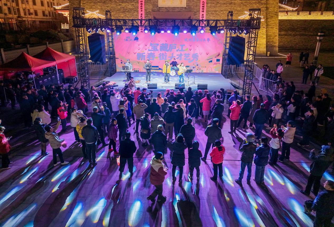 春节假期期间,安徽省合肥市庐江县“宝藏庐江新春街头才艺秀”火热开演,吸引市民前来观看欢度春节。