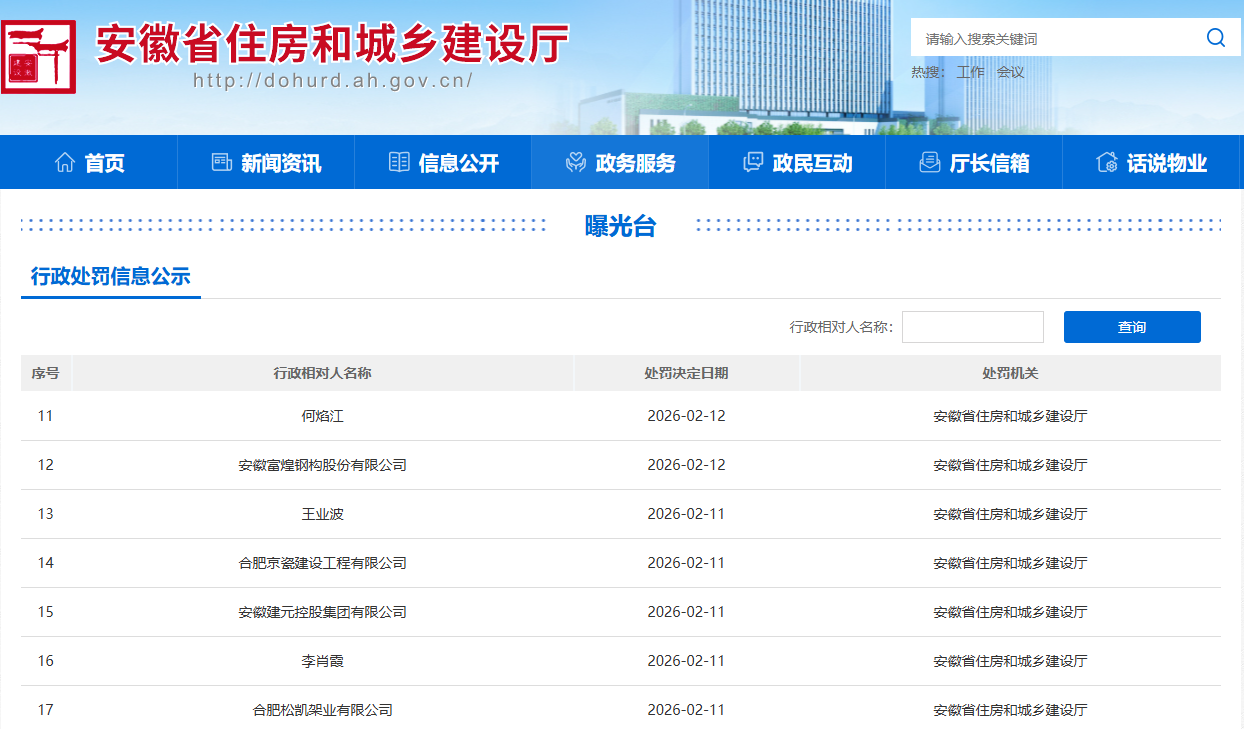 近日,安徽省住建厅公开披露多则行政处罚信息,因对事故发生负有责任,11家企业和6名负责人被罚,详情如下: