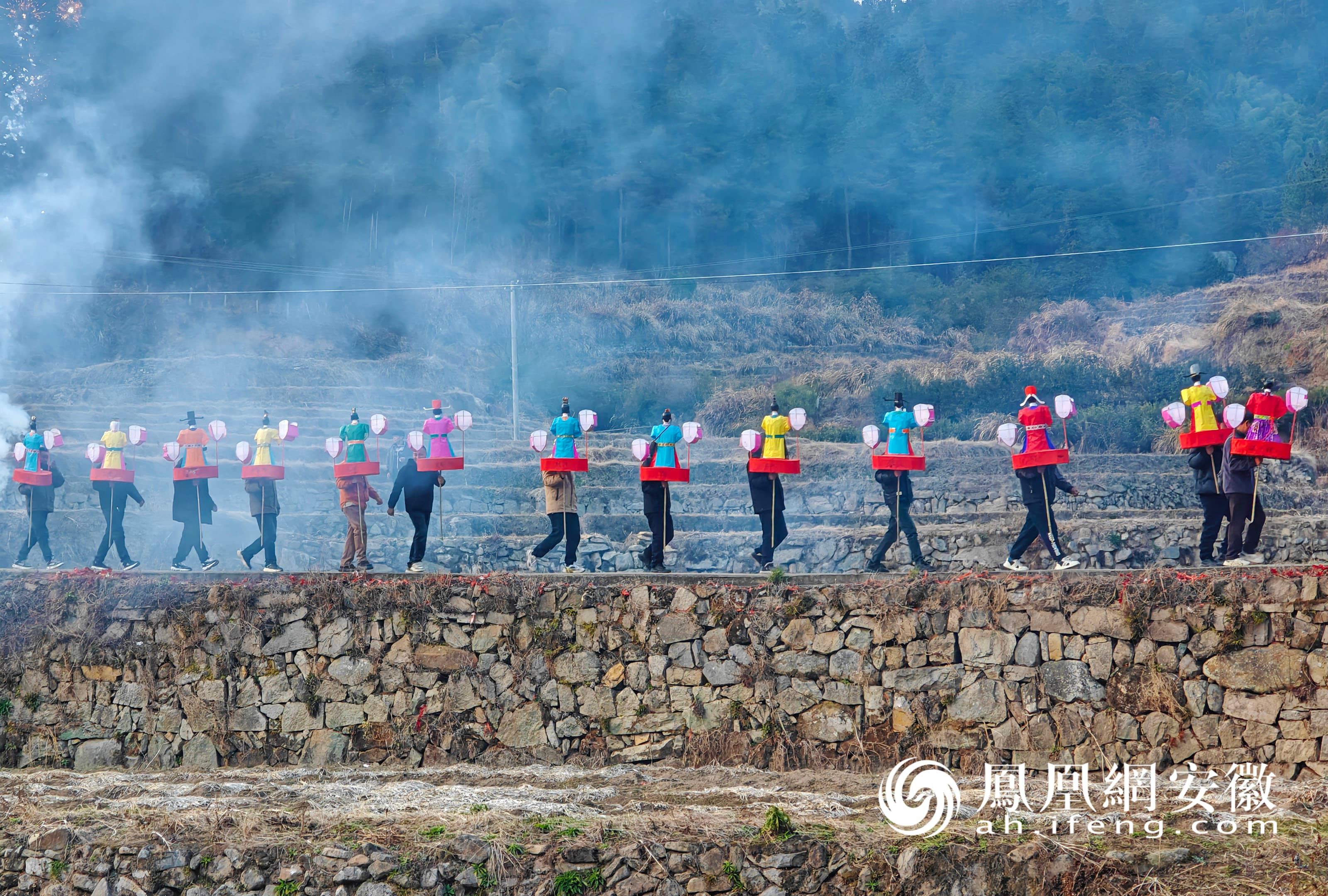 春节期间,安徽省安庆市岳西县举办丰富多彩的民俗活动,非遗展演精彩纷呈,人们相聚团圆,欢天喜地过大年。(凤凰网安徽特约摄影师 吴均奇/摄)
