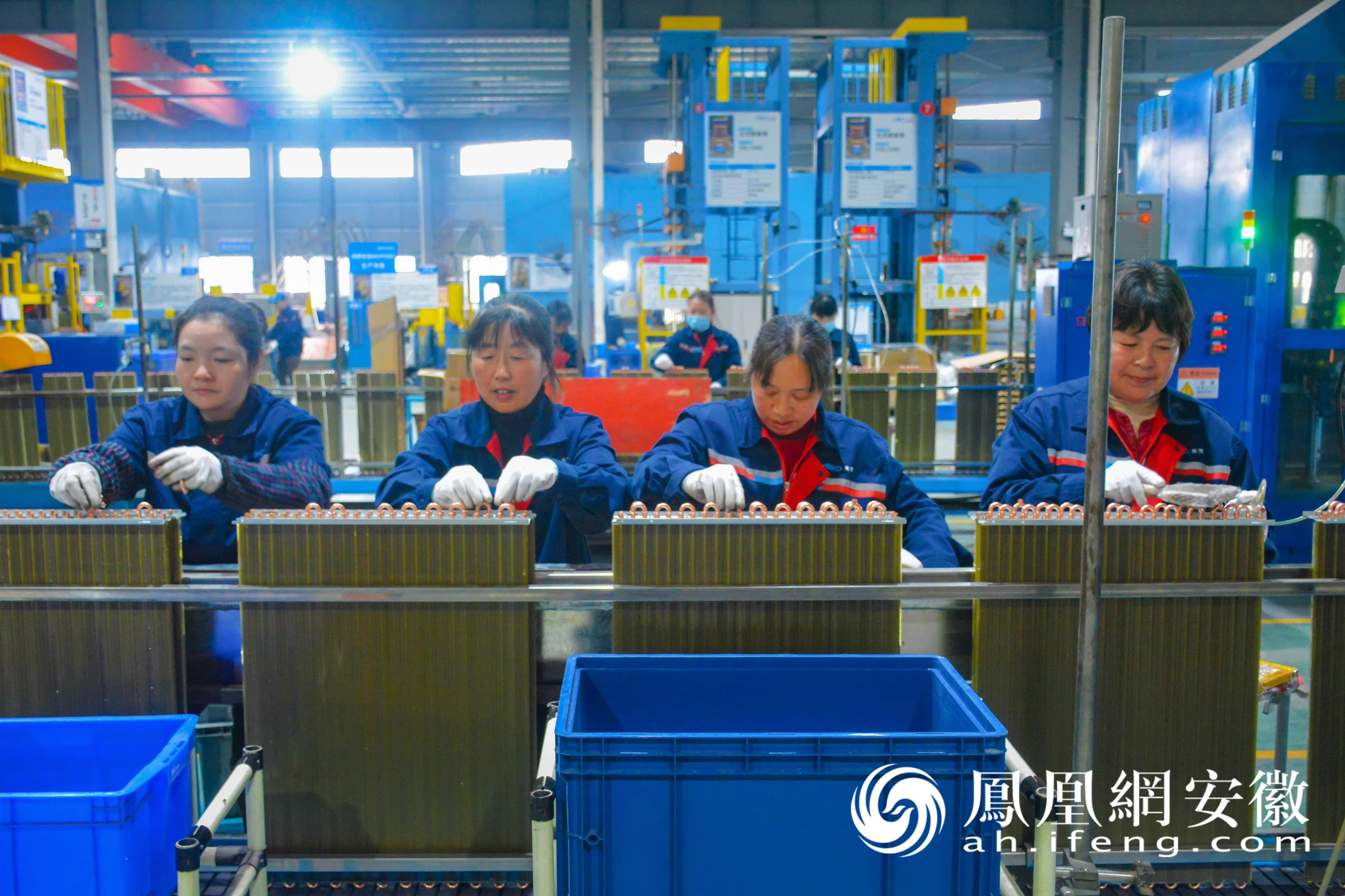2026年2月26日,在安徽省安庆市岳西经济开发区,安徽美博新能源科技有限公司的工人在生产空调冷热交换器,开足马力,奋力冲刺新春“开门红”。(凤凰网安徽特约摄影师 吴均奇/摄)