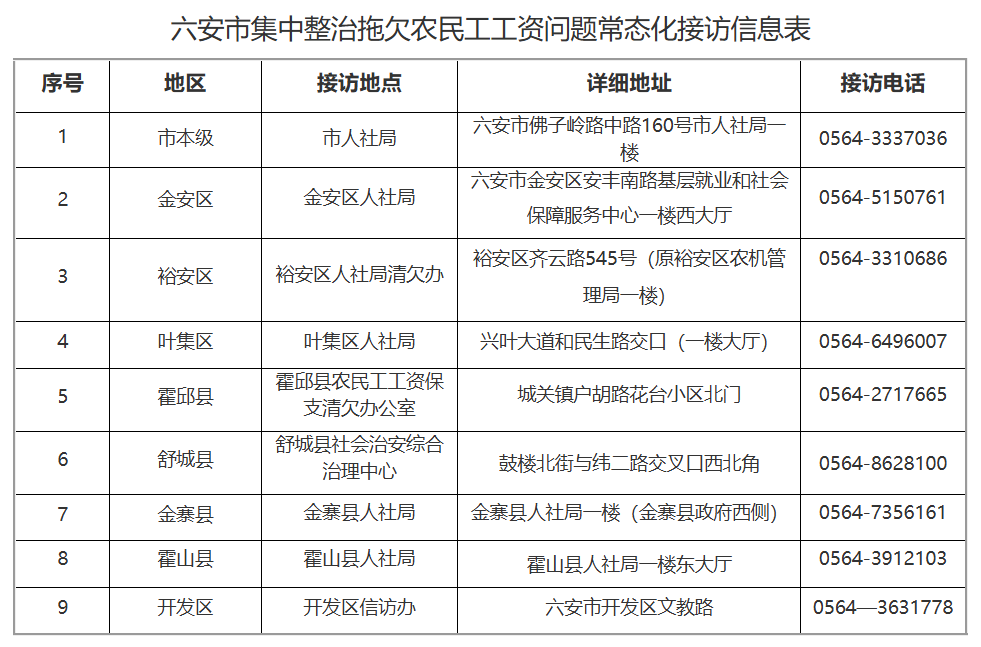 全市3月份集中整治拖欠农民工工资问题常态化接访公示