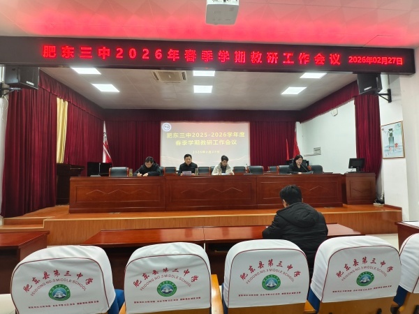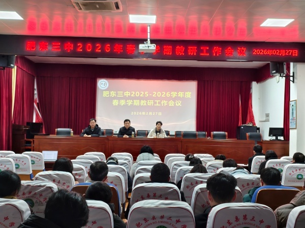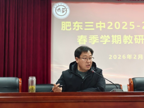 为推动教育数字化转型,深化智慧课堂与学科教学深度融合,2月27日,肥东三中召开2026年春季学期教研工作会议。本次会议以“数智赋能·课堂革新”为主题,围绕智慧课堂与教学深度融合、数字化课堂教学视导展开,旨在明确新学期教研方向,提升教师数字素养,全面推动教育教学高质量发展。书记崔孝斌、校长杨正霞、分管副校长汪长兵、王卫华以及全体教研组长参加了此次会议。